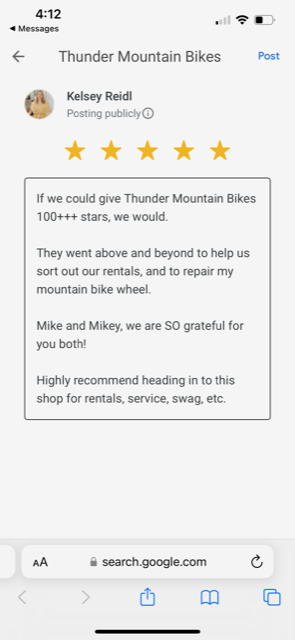 I cannot recommend Thunder Mountain Bikes enough if you need a rental or a repair in Sedona.