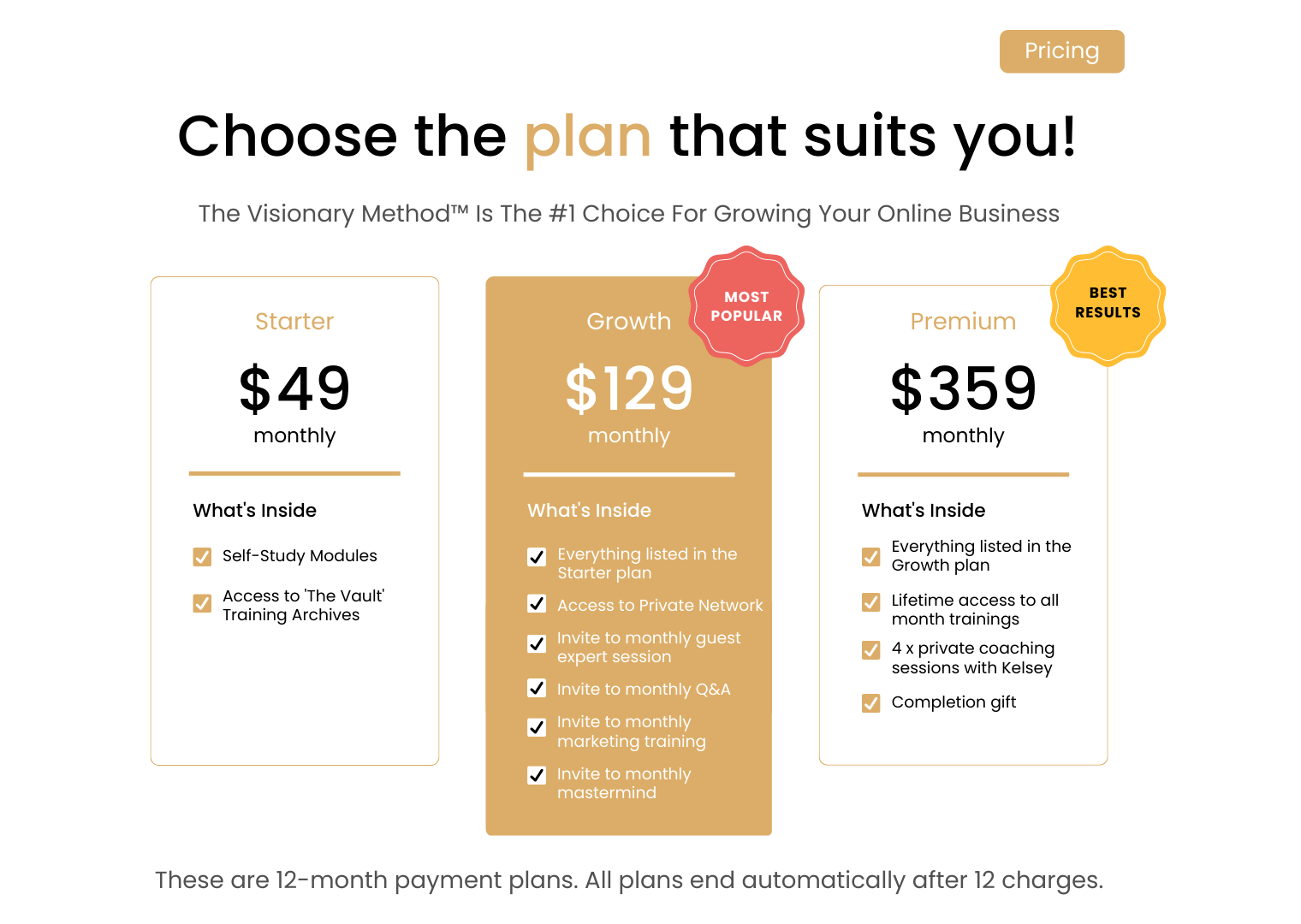 The Visionary Method Business & Marketing coaching can help you identify the βleaksβ in your business, implement new acquisition strategies for growth, and overcome your current roadblocks so that you can focus on what matters most: running a successful and profitable Online Business that supports your lifestyle goals.